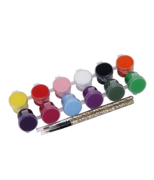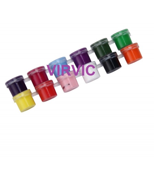 Set 12 Vopsele Acrilice 3D + 2 Pensule Manichiura si pictura unghii